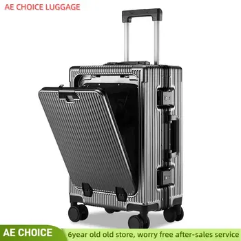 Front Opening Travel Suitcase on Wheels Aluminum Frame USB Travel Bag Large Capacity TSA Password Rolling Luggage Case