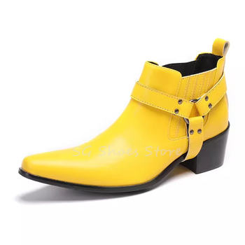 British Style Belt Buckle Chelsea Boots for Men Mid Calf Dress Shoes Male Pointed Toe Chunky Heel Business Formal Ankle Boots