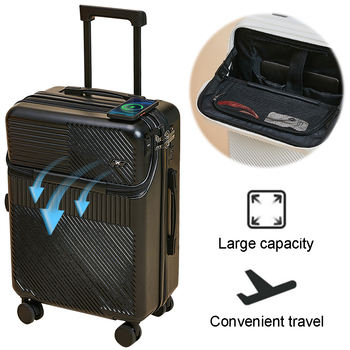 Suitcase High Quality 20 Inch Front Opening Laptop Boarding Case 24″ Aluminum Frame Case USB Charging Luggage