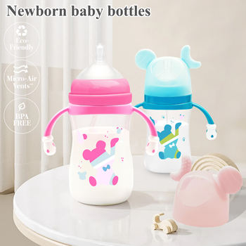 1pcs 180ml Bear Moon feeding bottle with handle, gravity ball straw, 0-36 months baby feeding bottle, food grade PP , BPA free