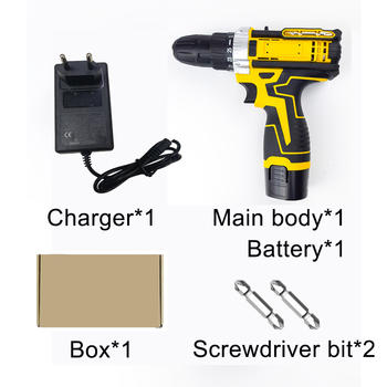 Lithium ion drill multifunctional electric screwdriver Free screwdriver heads * 2 Paper box Electric tool Battery and charger