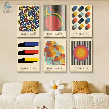 Nordic Minimalist Wall Art Mid-century Abstract Bauhaus Geometric Lines Canvas Poster Prints Home Bedroom Living Room Decoration