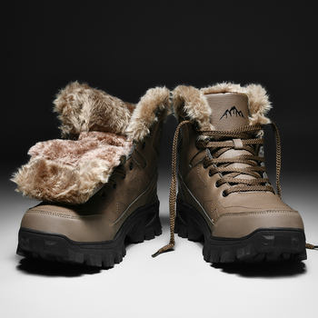 Outdoor Mid-top Winter Snow Warm Work Boots Hiking Shoes Men Waterproof Lightweight Trekking Ankle Boots Mountain Sneakers