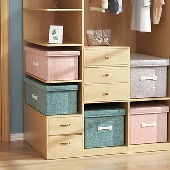 1PC Cotton and Linen Organizer Foldable Wardrobe Storage Bin Drawer Organizer with Lid Large Capacity Clothes Toy Organizer