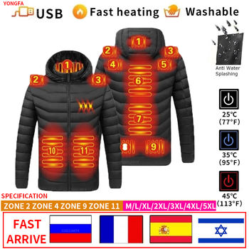 Heated Jacket Men Ladies Outdoor Warm Sports Warm Jacket Winter Clothes USB2 Zone 4 Zone 9 Zone 11 Zone Heating Black Red