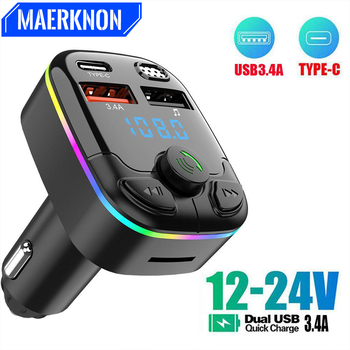 USB Car Bluetooth 5.0 FM Transmitter Type C Car Charger Auto Radio Handsfree Wireless Car Kit Car MP3 Support TF Card U Disk