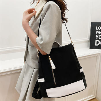 Waterproof Oxford Cloth Stitching Women’s Backpack Anti-theft Back Zipper Girls Schoolbag Casual Travel Single Shoulder Backpack