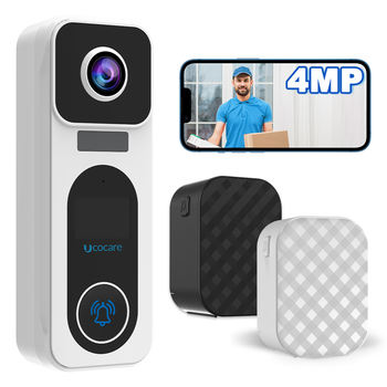 UCOCARE 4MP Wireless Vieo Doorbell With Two Chime Outdoor WiFi Doorbell Camera Human Detection Support Alexa IP67 Waterproof X6