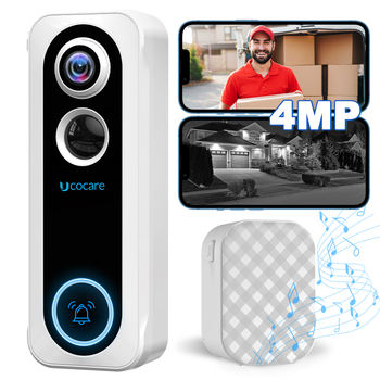 UCOCARE 2K 4MP Doorbell Camera Wireless Video Doorbell With Chime Human Detection 2-Way Audio Night Vision Support Alexa IP67 P7