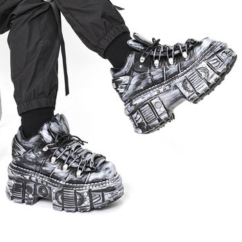 2025 New Punk Style Women Shoes Woman Sneakers Gothic Ankle Rock Boots Lace-up Heel Height Platform Shoes Woman Metal Decor