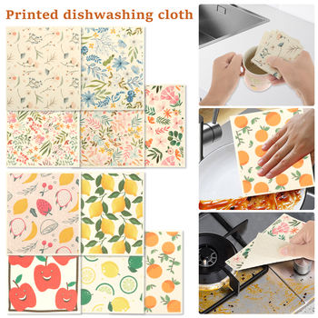 Printed Absorbent Cleaning Dishcloth Swedish Dishcloth Reusable Kitchen Dish Towel Simple Style Cellulose Cleaning Cloth Wet Dry