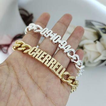 DODOAI Fashion Customized Name Bracelet Stainless Steel Personalize 10MM Cuban Chain Letter Bracelet Women Men Family Gift