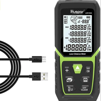 Huepar Laser Distance Measure 50/100/120 Meter Backlit LCD Laser Rangefinder M/In/Ft with Li-ion Battery & Electric Angle Sensor