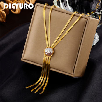 DIEYURO 316L Stainless Steel Gold Color 2-Layer Pearl Tassel Necklace For Women Fashion Girls Clavicle Chain Party Jewelry Gift