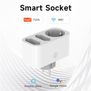 TUYA EU Smart Tribble Plug, 3in 1 Voice-Controlled Wi-Fi Socket, Alexa/Google Home, Timer Remote Control