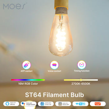 MOES Tuya WiFi Smart ST64 Edison LED Light Bulbs 16 Million RGB Color Changing 2700K-6500K Dimmable Work with Alexa/Google Home