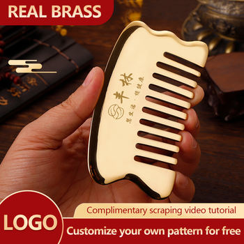 Copper guasha plate pure brass household scalp universal massage comb Mammary Scraping comb body massage tool
