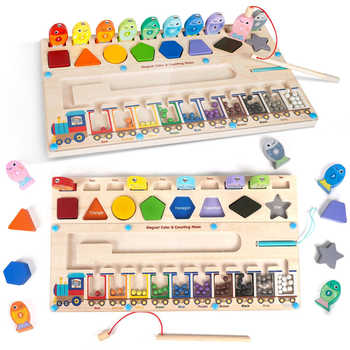 Montessori Magnetic Color and Number Maze, Wooden Magnet Puzzle Game Board for Toddlers, Fine Motor Skills Toys