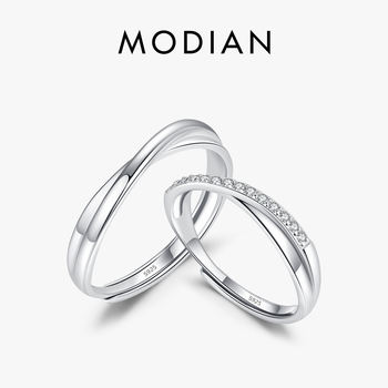 MODIAN Real 925 Sterling Silver Lines Twining Romantic Adjustable Couple Rings For Women Classic Wedding Engagement Fine Jewelry