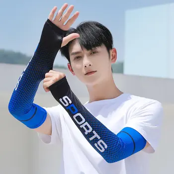 Summer Running Arm Sleeve Ice Silk Cooling Sunscreen Cuff UV Sun Protection Sleeve Anti-Slip Men Women Long Gloves Outdoor Sport