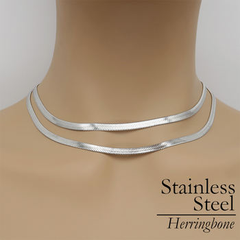 10 Pieces Herringbone Necklace Stainless Steel Snake Necklace Gold Plated Flat Snake Chain Chain Necklace for Women Men