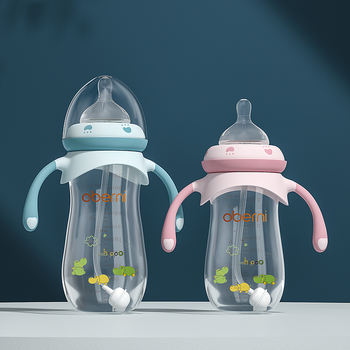 Oberni baby milk bottle silicone nipple breast-like feeding bottle Anti Colic with straw handle bottles for babies boy and girl