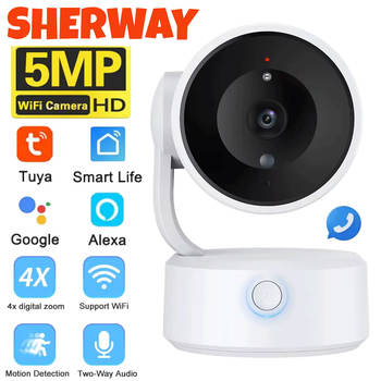 Tuya Wifi Camera Indoor 5MP One-Touch-Call Baby Monitor Two Way Talk Security IP Camera Video Surveillance Wireless 4X Zoom Cam