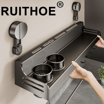 Suction Cup Kitchen Organizer Shelf Wall-mounted Spice Storage Rack Kitchen Knife Holder Wall Seasoning for Chopstick Spoon