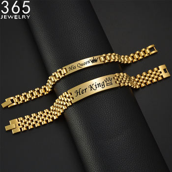 Customized Punk Style Stainless Steel Men Bracelet Engraved Name Date Thick Chain Bracelets for Women Couple Anniversary Jewelry