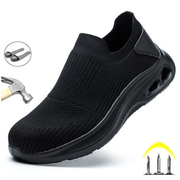 Summer Breathable Mens Work Safety Shoes Lightweight Steel Toe Anti Smashing Anti Slip Indestructible Male Boots Footwear