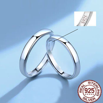 CWWZircons Glossy 925 Sterling Silver Adjustable Couple Ring for Women Men Engagement Wedding Bridal Band Jewelry Gift SR038