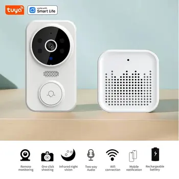 Tuya Video Doorbell Home WiFi Wireless Doorbell Rechargeable Battery Powered Color Night Vision Camera Bell Visual Doorbell