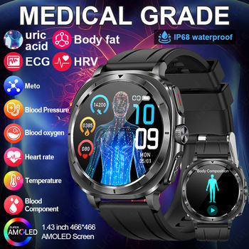 2025 New Nursing Grade ECG+PPG Pulse therapy Smartwatch Men Blood lipid Uric acid Bluetooth call Health Bracelet For Android iOS
