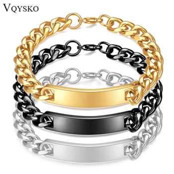 VQYSKO Personalized Partner Bracelet Made Of Stainless Steel Desired Text Engraving Bracelet For Couples Plate Pendant Christmas