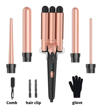 5 in 1 Curling Iron 3 Barrel Hair Crimper Hair Waver Curling Iron with Fast Heating Up Crimper Wand Curler for All Hair Types