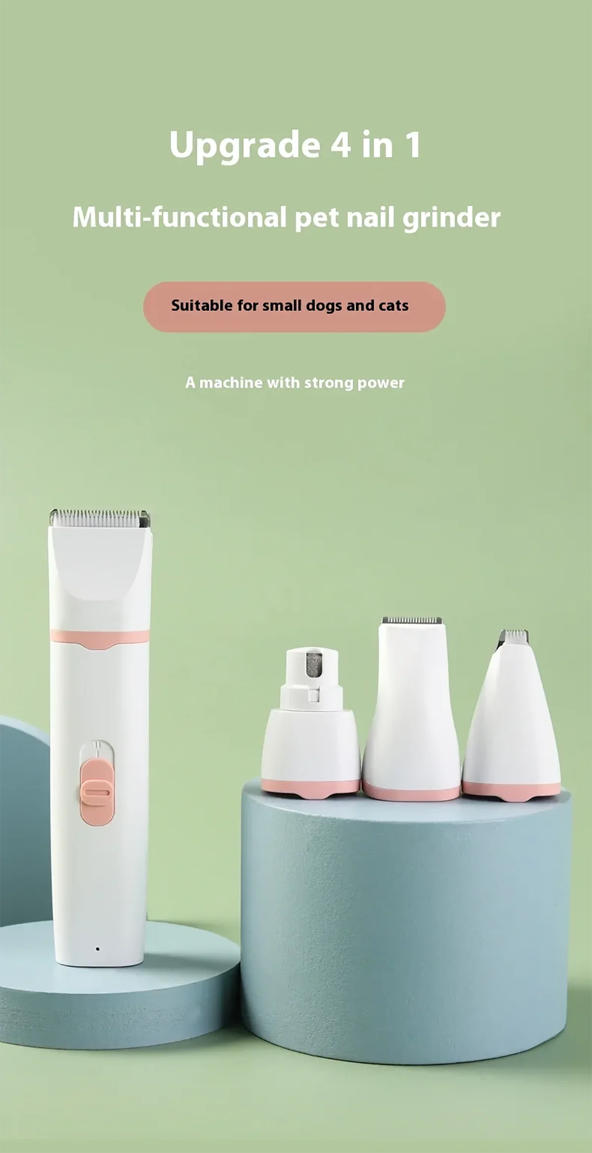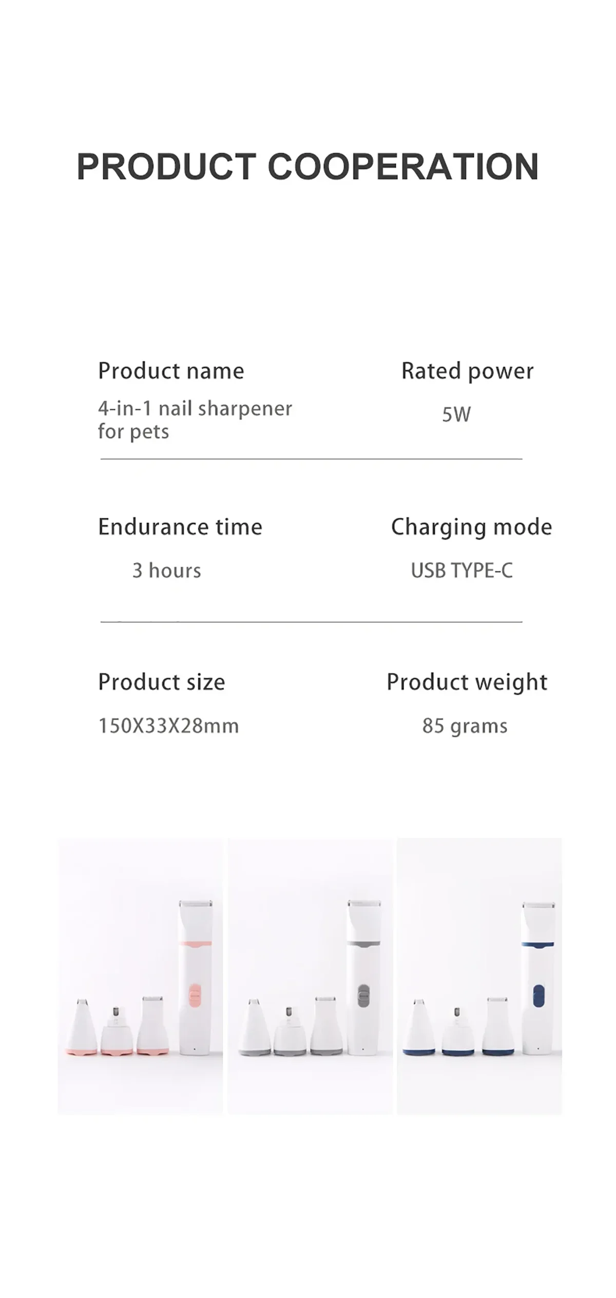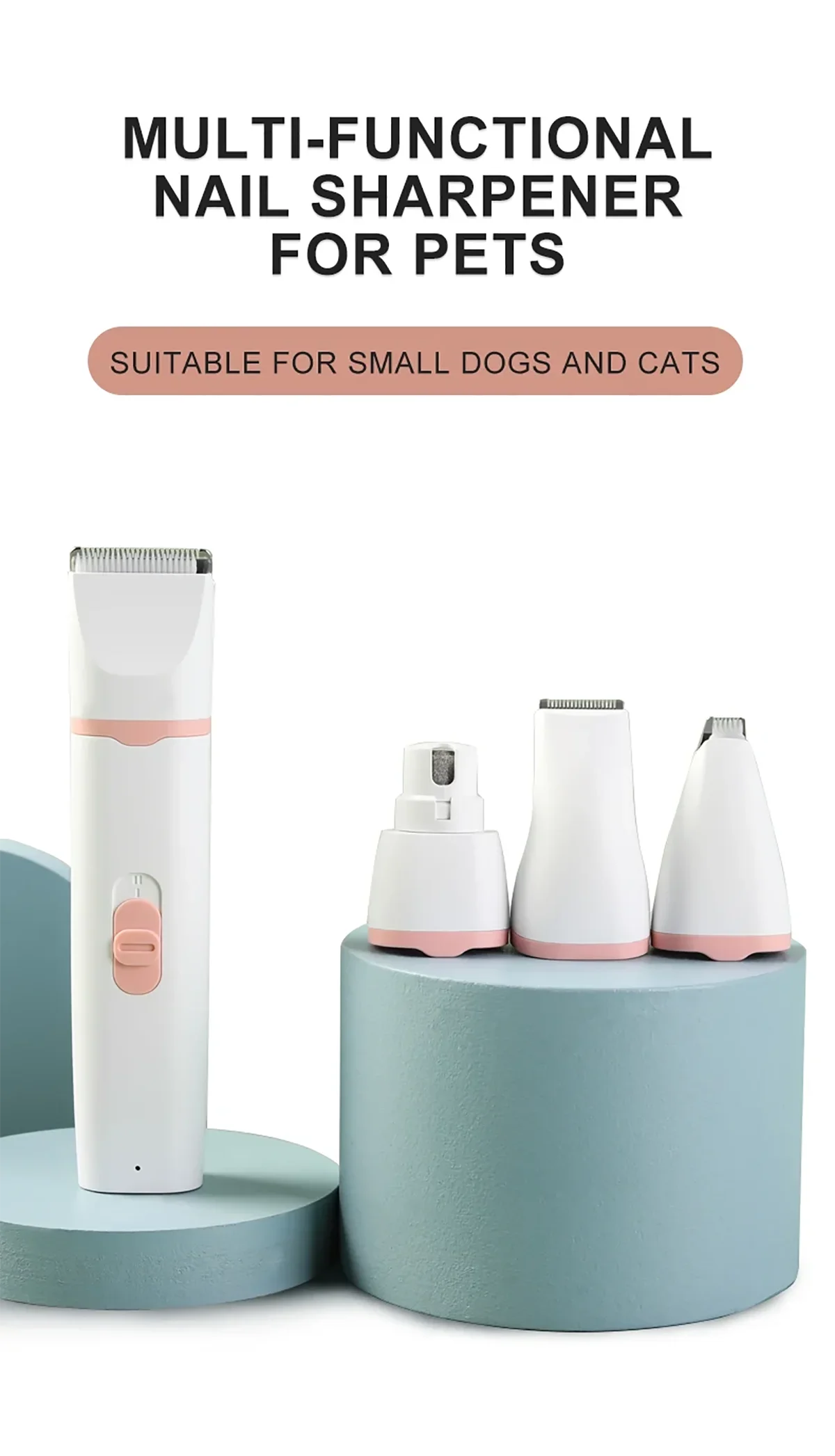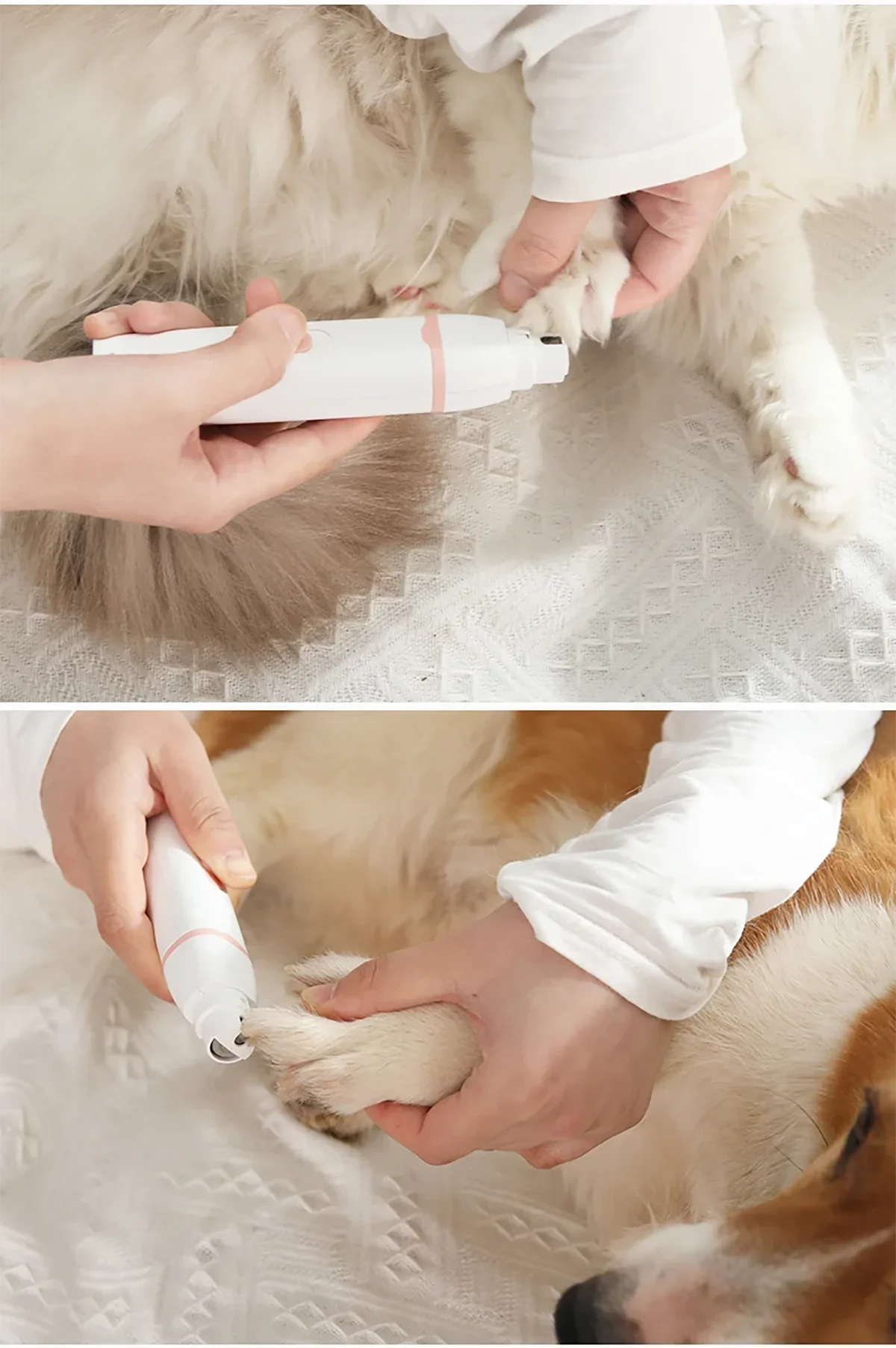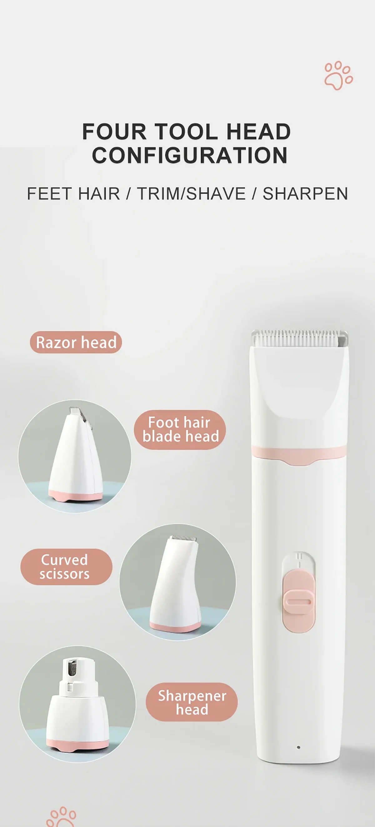 【Pet Grooming Kit Includes】 1 x Dog Paw Trimmer (1 x Large Head + 1 x Medium Curved Head), 1 x USB Charging Cord, 1 x Cleaning Brush, 4 x Restriction Combs (Protective Combs).