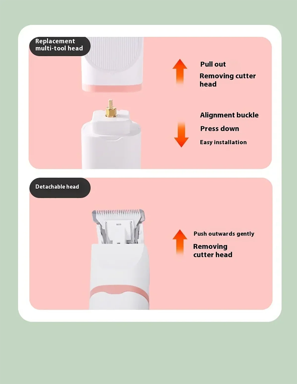 【SAFETY & PRECISION TRIMMING】 Dog clippers come with upgraded dual blades made of stainless steel and ceramic to stay sharp and ensure safety when in use. Equipped with standard head (1.25″) and special delicate narrow head (0.6″), suitable for trimming various areas such as body, paws, eyes, ears and butt. Comes with multiple limiting combs to work with you to achieve your desired shaving length. The blade section can be removed for underwater cleaning and washing.
