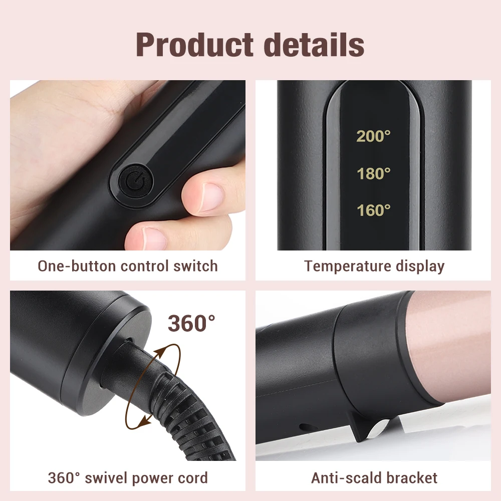 1. 30 seconds fast heating, automatic constant temperature hair care, care for hair while curling, making your hair moist and soft.