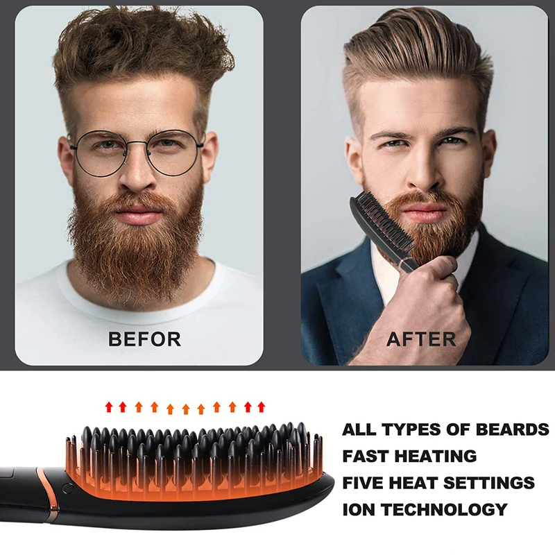 Professional Electric Beard Straightener Brush Negative Ion Portable Heating Ceramic Hot Comb Fast Heat Styling Comb