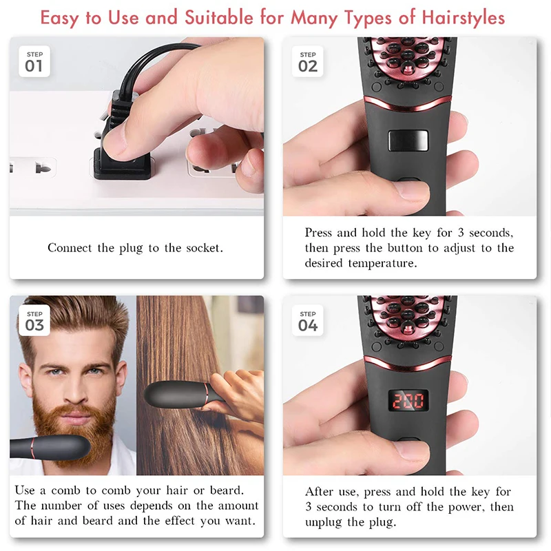 1.Helpful and Useful: The ionic technology in our hair straightener brush helps reduce static electricity and frizz, while also repairing damaged strands from the inside out. Achieve a healthy shine and smooth hair with ease.
