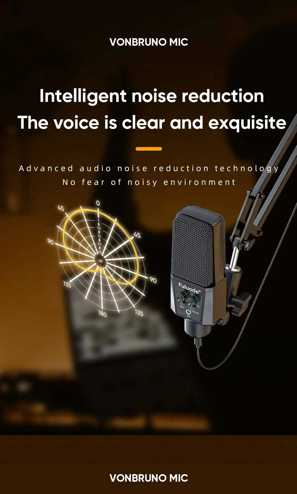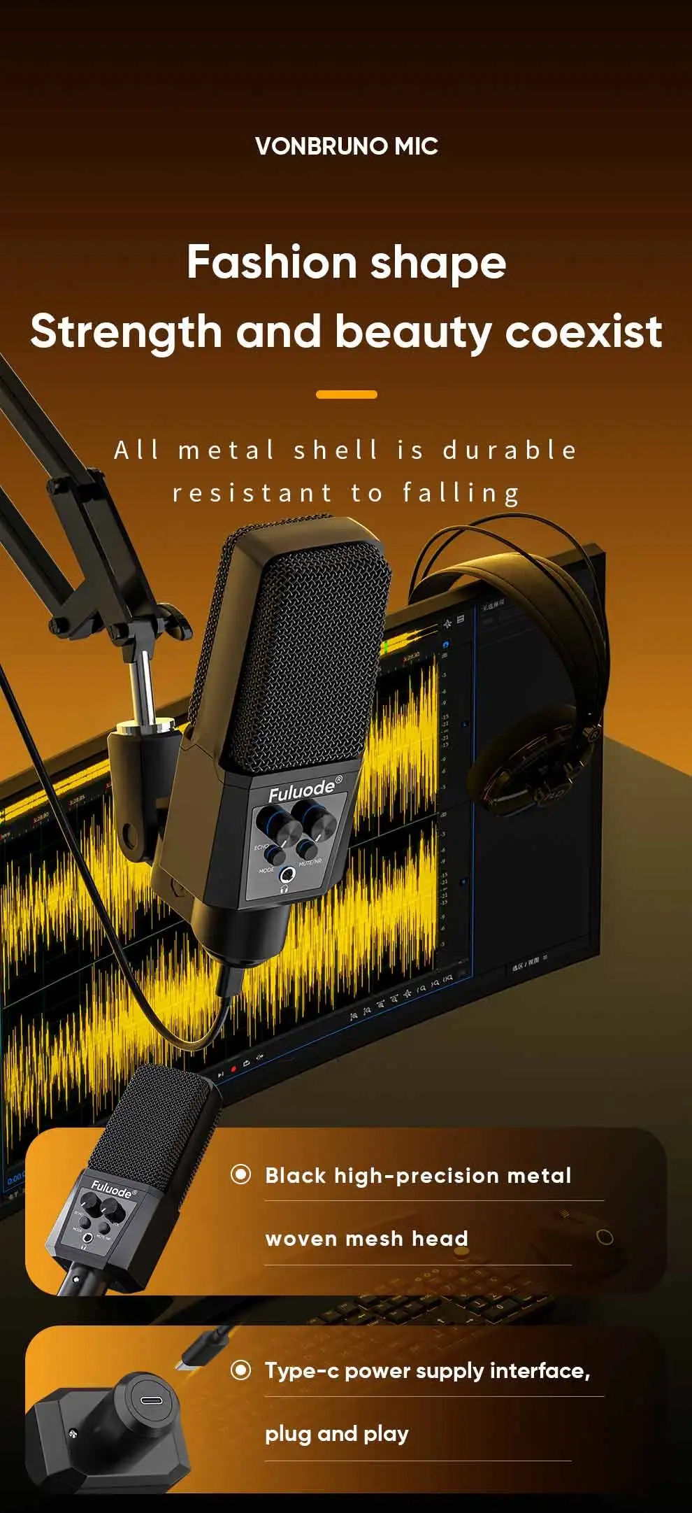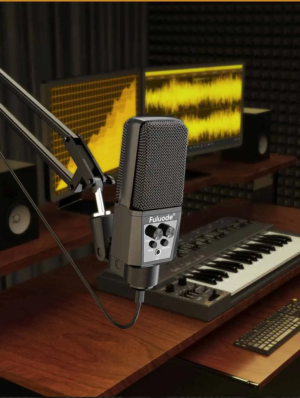 Professional USB Streaming Podcast PC Microphone Studio Cardioid Condenser Mic Kit with Boom Arm For Recording