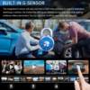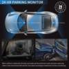 It utilizes 170° front camera, 150° inside camera and 170° rear camera to record front, inside and road back simultaneously, the inside camera lens is 180 degree vertically rotatable for best viewing angle,24 hr parking monitor
