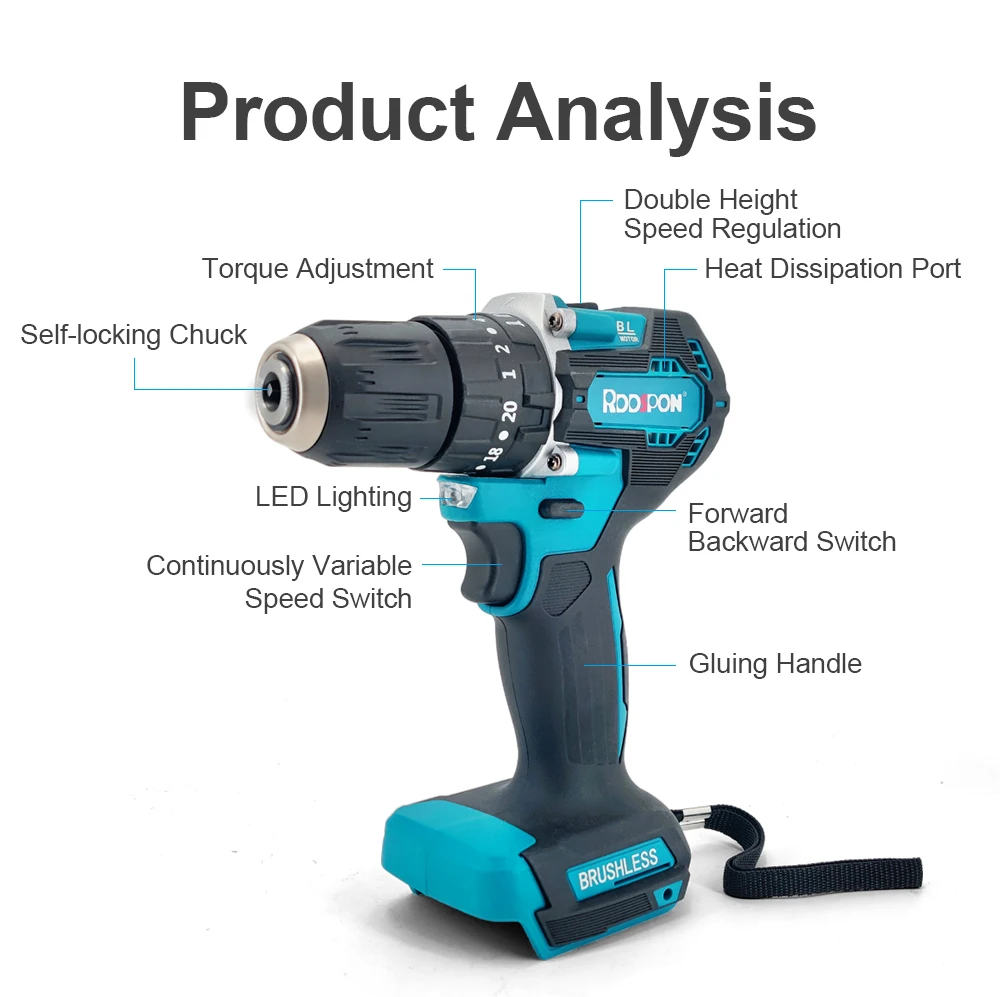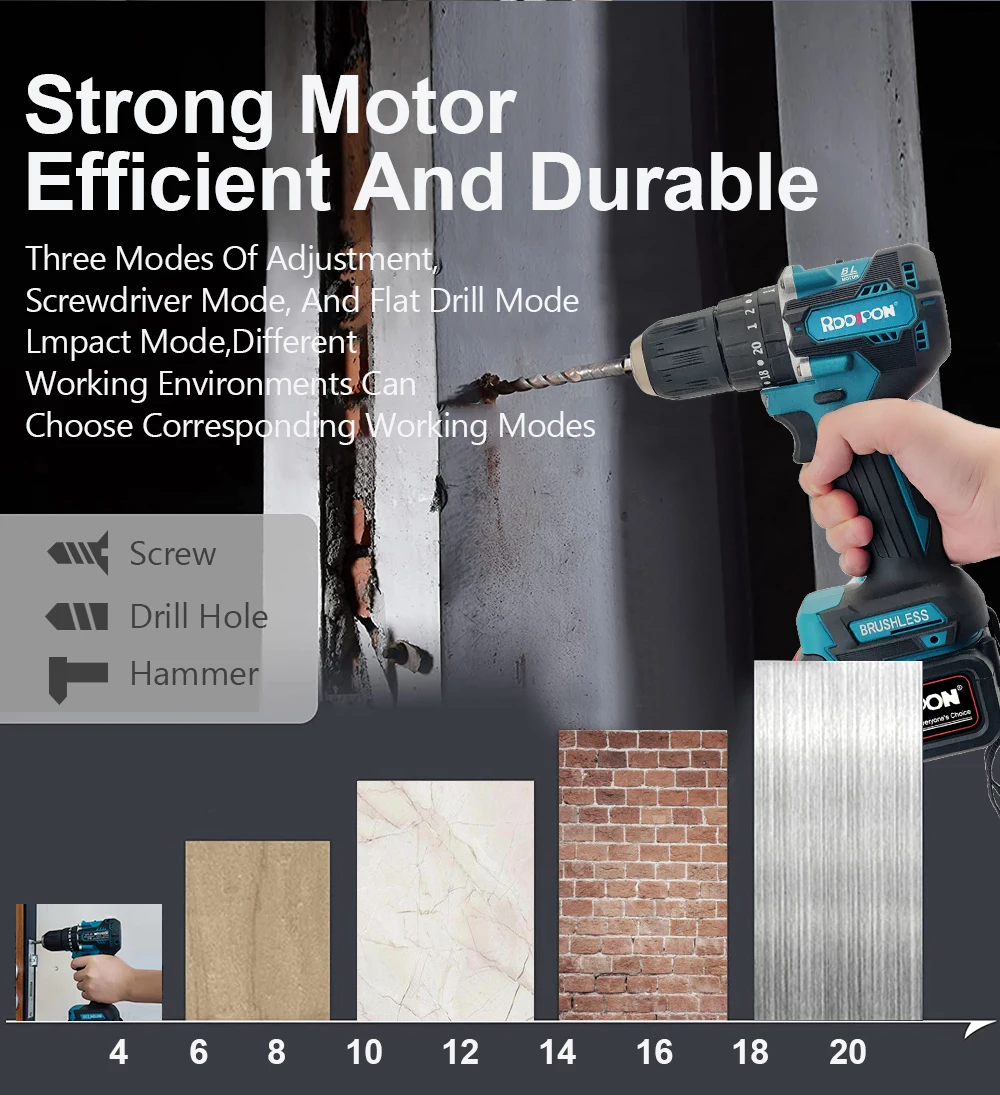 ▲Mechanical 2-speed gearing; High speed mode for speedy drilling in light duty applications; Low speed mode for heavy duty applications requiring high torque.