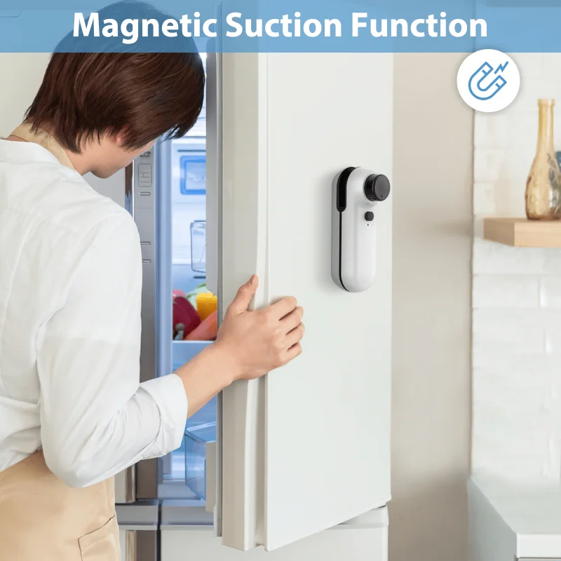 【Small and Portable】This delicate mini bag resealer can be placed everywhere, space-saving in the house and can be attached onto the refrigerator with a back magnet. Get rid of a bunch of bag sealer clips that are easy to lose. easy to carry outdoors for picnic, camping trip, etc.