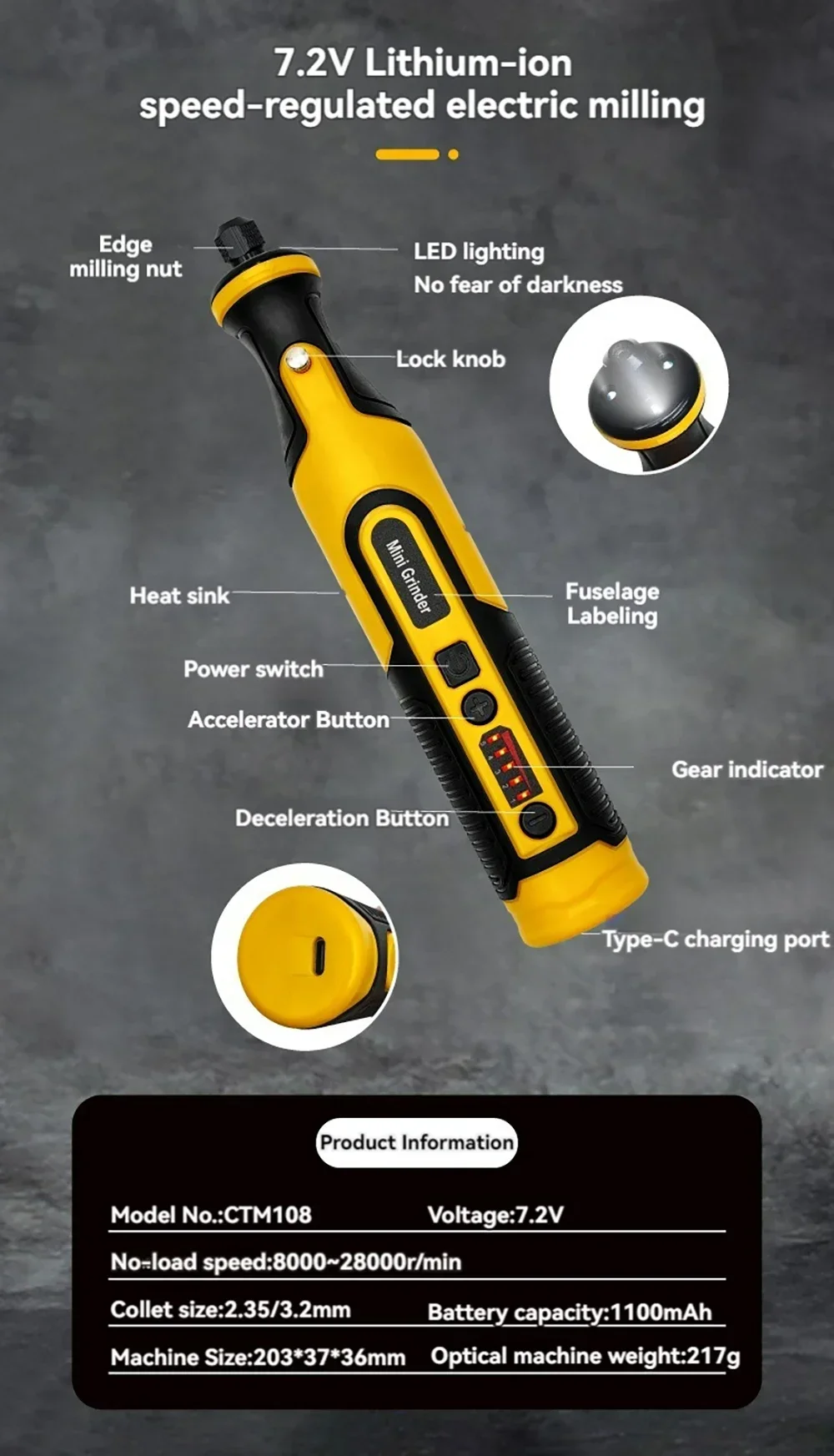 Rechargeable 7.2V Electric Engraver Mini Rotary Tool Kit Portable Cordless Drill Grinder Engraving Pen Drilling Griding Machine