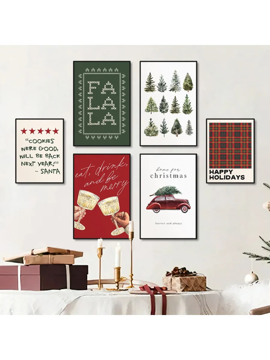 Retro Christmas Tree Car Canvas Prints Merry Christmas Holiday Slogan Wall Art Poster for Modern Living Room Bedroom Home Decor