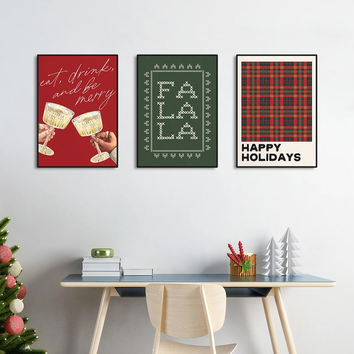 Retro Christmas Tree Car Canvas Prints Merry Christmas Holiday Slogan Wall Art Poster for Modern Living Room Bedroom Home Decor