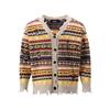 Retro Rainbow Striped Cardigan Sweater Men’s Autumn New Trendy Su Outwear Y2k Knitwears Oversize Raw Edges Frayed Sweatercoat