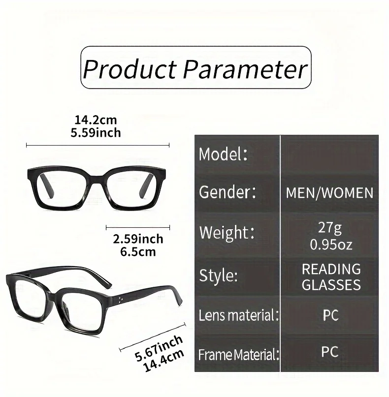 Retro Square Reading Glasses with Blue Light Blocking, Spring Hinge – 1.0 to 4.0 Strength, Multifocal Reading Glasses