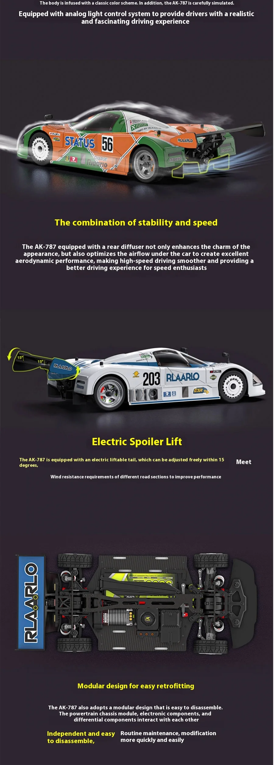 Rlaarlo1:10 remote control electric brushless professional speed racing simulation model car of Rarello AK-787 flat sports car